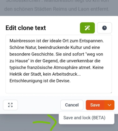 Om dit probleem op te lossen hebben we een nieuwe functionaliteit geïntroduceerd: het vastzetten (locken) van tekstblokken. Met deze optie zet je specifieke tekstblokken in de buitenlandse clone vast.